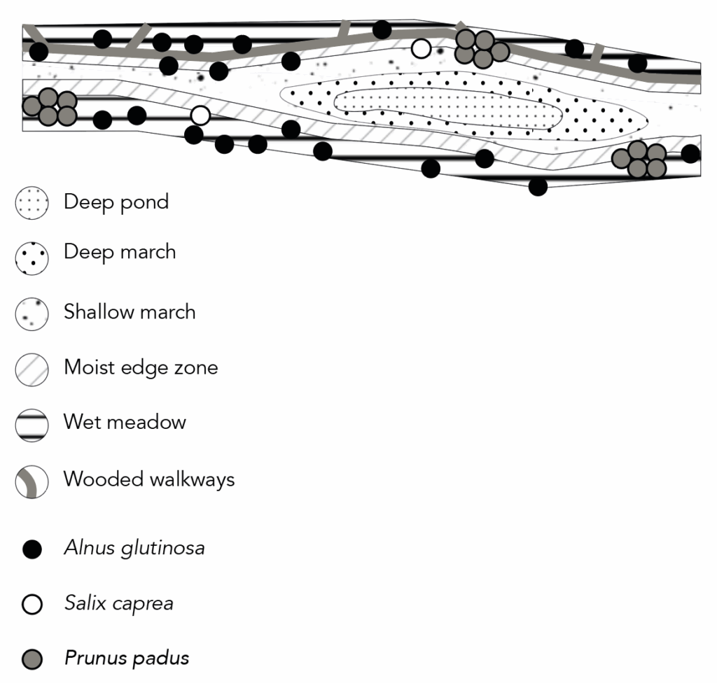 The design area consists of five biotopes.
